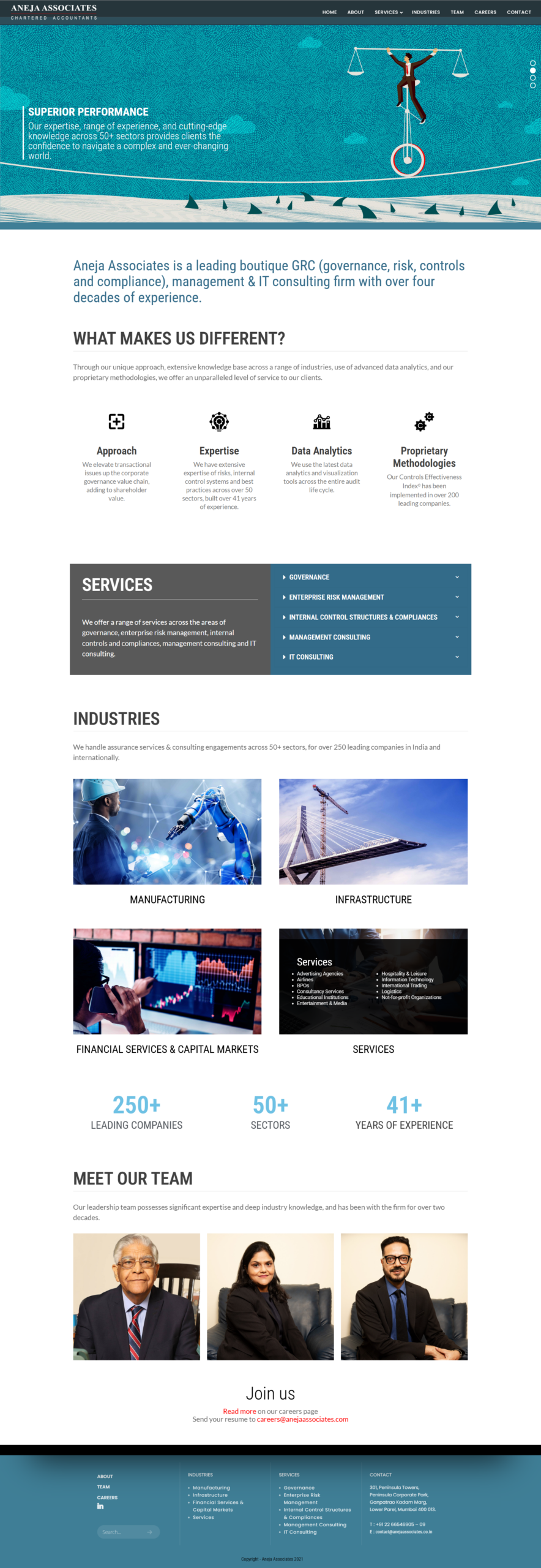 Aneja Associates is a professional services firm offering consulting and advisory services. The website was developed to showcase the firm’s expertise, services, and professional approach.