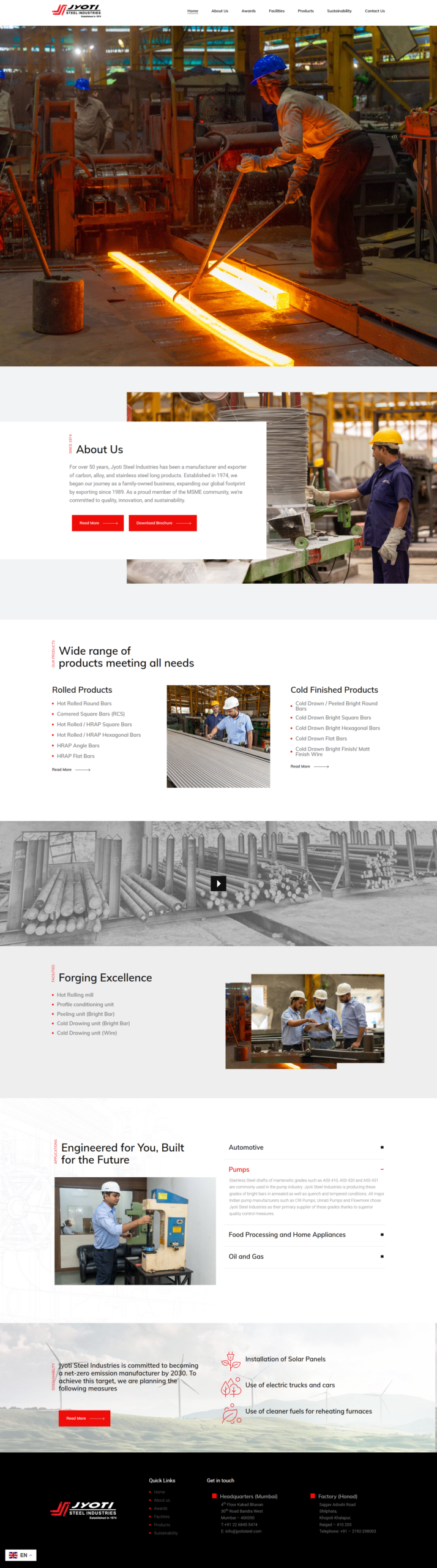 We developed a structured website highlighting the company’s products, manufacturing expertise, and industry presence.