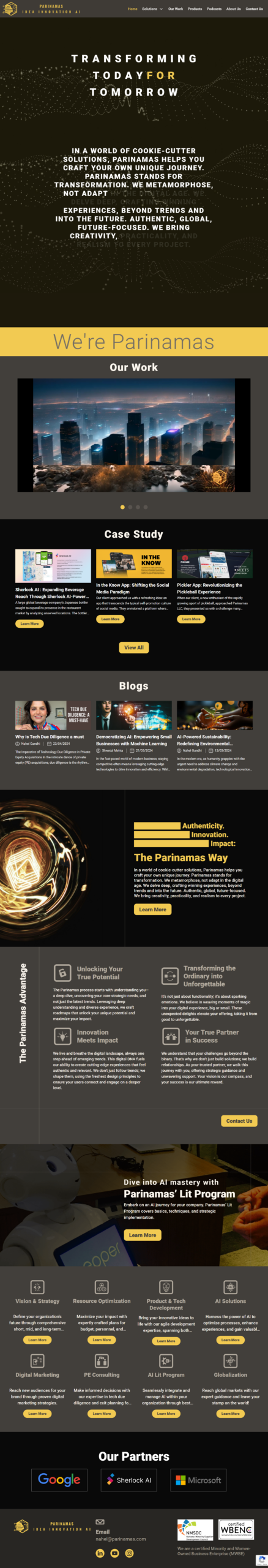 Parinamas is a digital transformation and technology consulting company helping organizations leverage modern technologies such as AI, automation, and digital platforms. The website was designed to present their services and thought leadership in a modern and structured way.