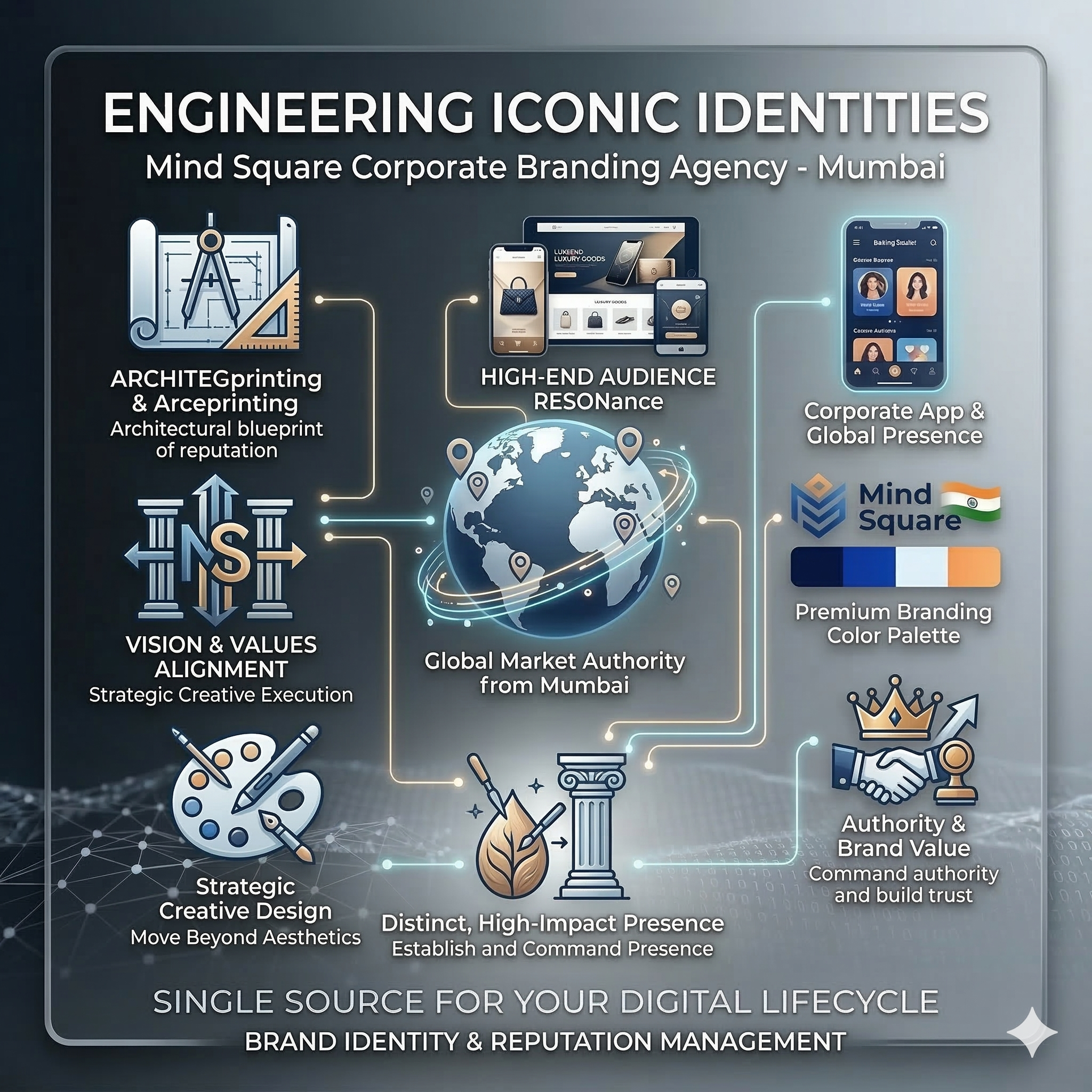 Your brand is the architectural blueprint of your reputation. At Mind Square, we specialize in comprehensive Corporate Branding services that move beyond aesthetics to establish a distinct, high-impact presence in your industry.